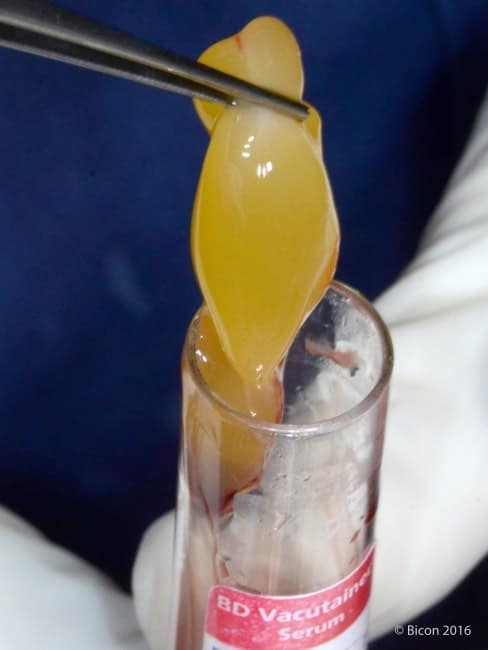 3.- Obtención del «Súper-Gel»: El resultado es una membrana de Fibrina (una proteína clave en la coagulación) que está enriquecida con: